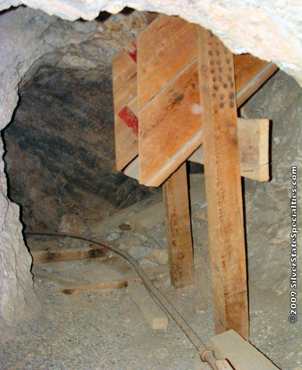 DO NOT ENTER old mines, especially without having the proper equipment. NEVER enter by yourself! We use headlamps for light, with several back up flash lights. We carry a multi-gas sensing meter that measures the oxygen level, as well as methane gas level; however, we do NOT carry rescue breathing equipment. Bad air is a reality for many old mines - carbon monoxide and other dangerous gases collect in lower levels of many mines, as well as in many isolated pockets of the twists & turns of many mines (and you will NOT be able to smell the bad gas before it overwhelms you). We carry extra batteries, rescue ropes, first aid kits, and plenty of water. We also carry a Spot GPS Meter that sends an email w/GPS coordinates via satellite to love-ones before we enter stating our location and that we are OK. We do it again upon leaving the mine to let them know we’re out and safe; this meter also has the capability of sending a help signal and/or alerting 911 via satellite providing GPS coordinates – of course it doesn’t work within the mine itself. The BLM strongly advises to not enter these old mines, so if you choose to do so, it is solely at your own risk. Some mines, have steep & deep drop-offs, as well as difficult-to-see vertical shafts, which could be impossible to get back up out of. Also, even though you may see extensive use of wood ladders, shoring and support platforms inside old mines, this wood is very old and unstable; much of it is rotted (along with corroded nails & bolts) and WILL NOT support your weight. So please enjoy these photos but do not try to enter any old mines.