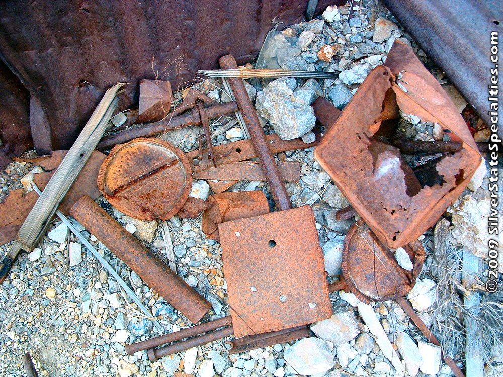 Next to the woodwork of the incline, headframe, and ore loading hopper we found the remains of this shack. The interior was pretty much salvaged/scavenged, not much left behind; my guess is that it was the machine shop or power shop (or a combination of the two), as we found the winch house across the canyon from the headframe & hopper (which we will explore later).