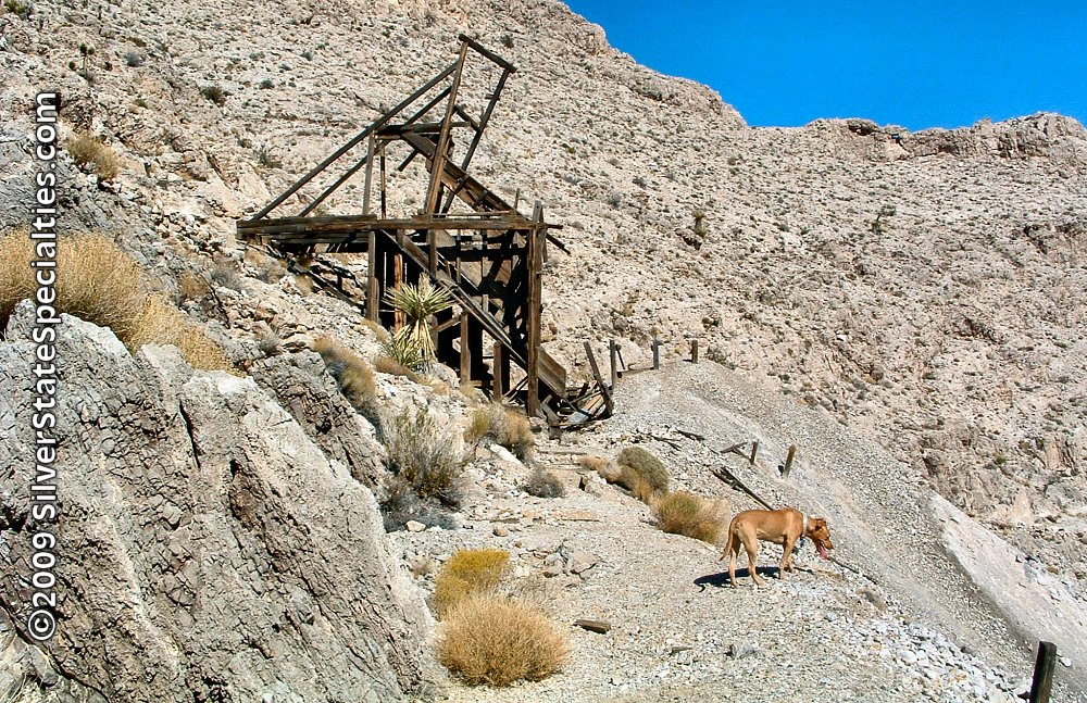 Bullion Mine; my pup is learning the ropes of desert exploration. |