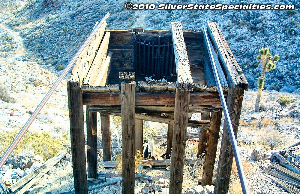 the wood ore hopper, and debris around it; notice the 10-pound mining