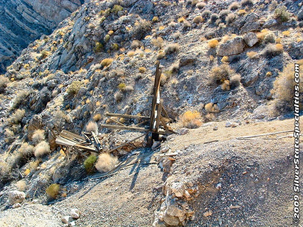 DO NOT ENTER old mines, especially without having the proper equipment. NEVER enter by yourself! We use headlamps for light, with several back up flash lights. We carry a multi-gas sensing meter that measures the oxygen level, as well as methane gas level; however, we do NOT carry rescue breathing equipment. Bad air is a reality for many old mines - carbon monoxide and other dangerous gases collect in lower levels of many mines, as well as in many isolated pockets of the twists & turns of many mines (and you will NOT be able to smell the bad gas before it overwhelms you). We carry extra batteries, rescue ropes, first aid kits, and plenty of water. We also carry a Spot GPS Meter that sends an email w/GPS coordinates via satellite to love-ones before we enter stating our location and that we are OK. We do it again upon leaving the mine to let them know we’re out and safe; this meter also has the capability of sending a help signal and/or alerting 911 via satellite providing GPS coordinates – of course it doesn’t work within the mine itself. The BLM strongly advises to not enter these old mines, so if you choose to do so, it is solely at your own risk. Some mines, have steep & deep drop-offs, as well as difficult-to-see vertical shafts, which could be impossible to get back up out of. Also, even though you may see extensive use of wood ladders, shoring and support platforms inside old mines, this wood is very old and unstable; much of it is rotted (along with corroded nails & bolts) and WILL NOT support your weight. So please enjoy these photos but do not try to enter any old mines.