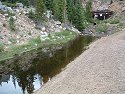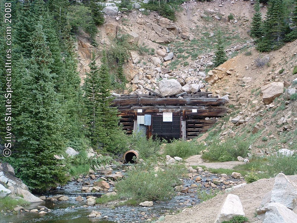 Eastern portal of the Carlton/Busk-Ivanhoe tunnel bored by the Colorado Midland Railway. A large volume of water is constantly draining from this tunnel, and this portal is barred from entry by a locked gate.