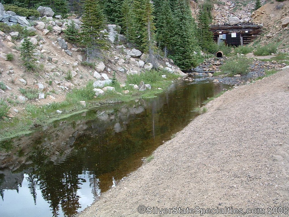 Eastern portal of the Carlton/Busk-Ivanhoe tunnel bored by the Colorado Midland Railway. A large volume of water is constantly draining from this tunnel, and this portal is barred from entry by a locked gate.