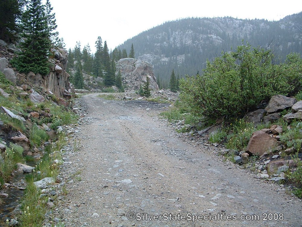 Old Colorado Midland RR grade on western slope of Continental Divide, west of Turquoise Lake. The CMRR spared no expense to carve a route through this rugged terrain,and it is still easily passable today.