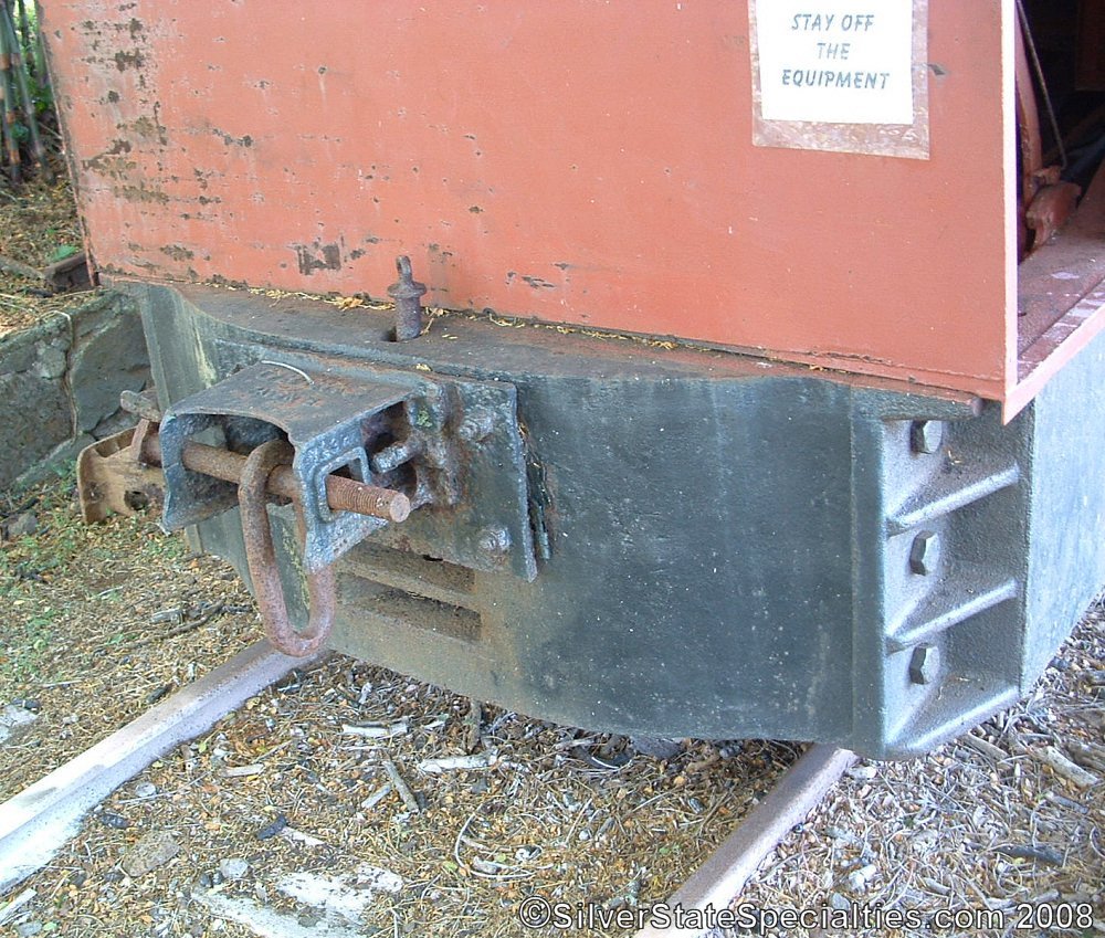 Rear view, showing rear link & pin coupler bracket (and coupler pocket lying on the ground behind the locomotive).