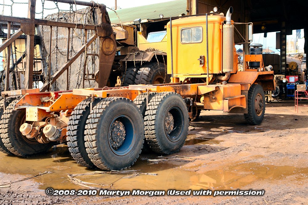 HC&S Repair Shops; Kenworth heavy-duty tractor awaiting repairs. Check out the large planetary drive hubs on the rear of the KW.