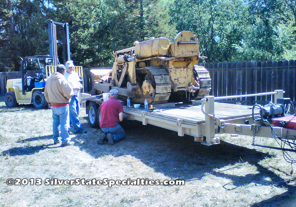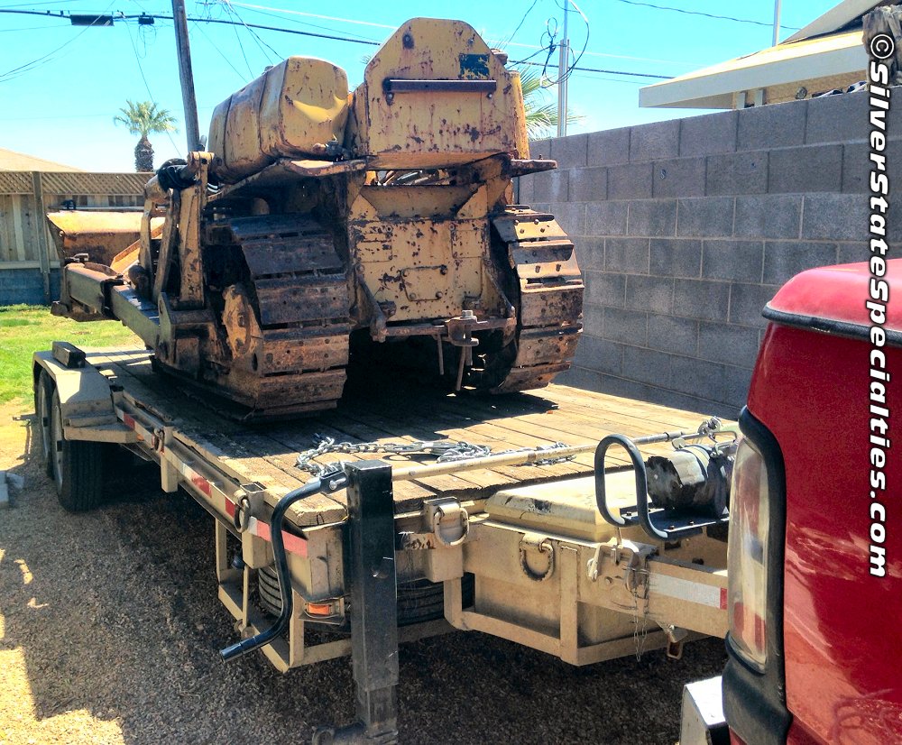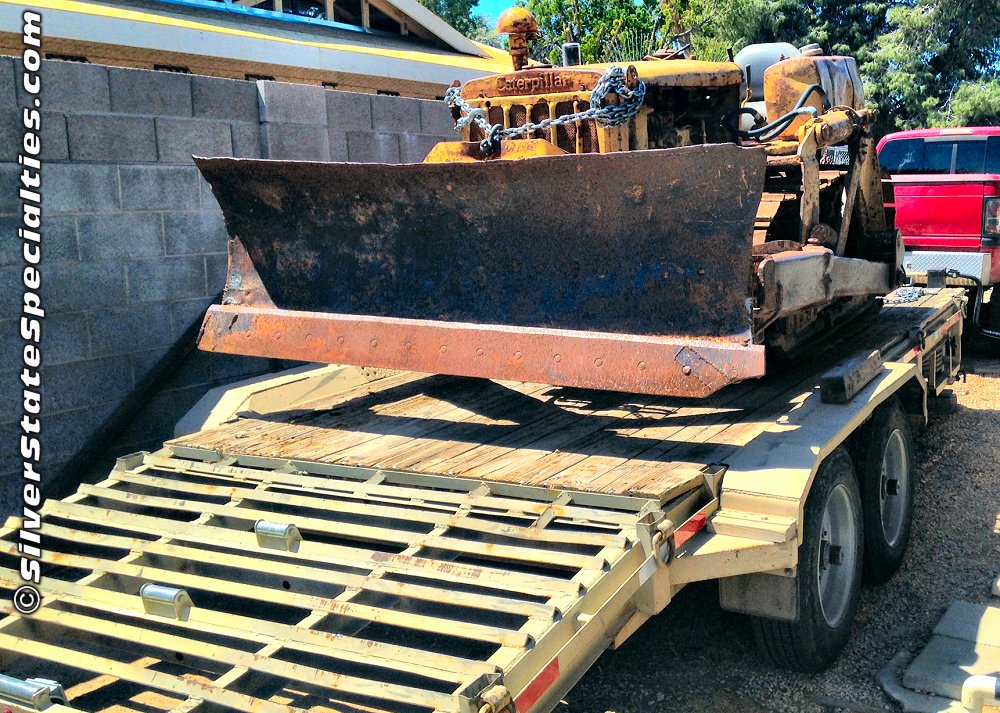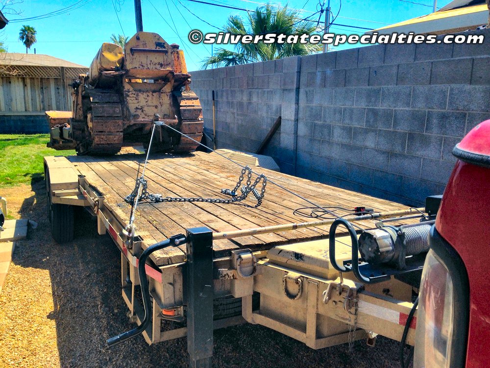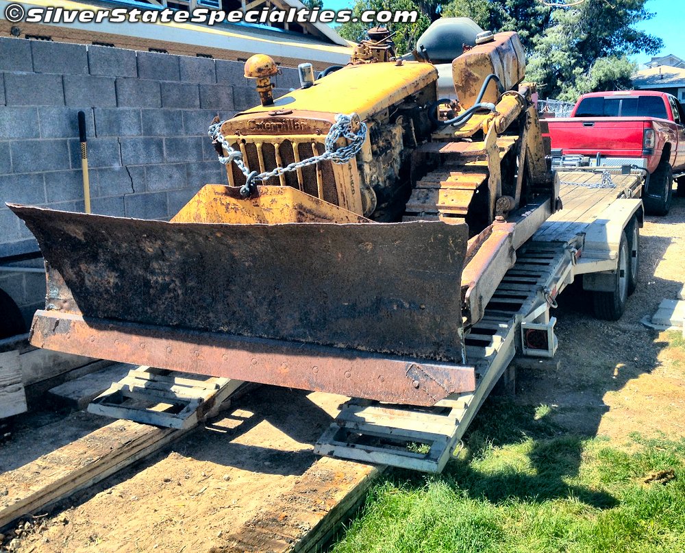 APRIL 2016 : Later views show the dozer in my side yard at my home in Las Vegas, and then the eventual transfer to my shop building on my mini-ranch property in Utah.