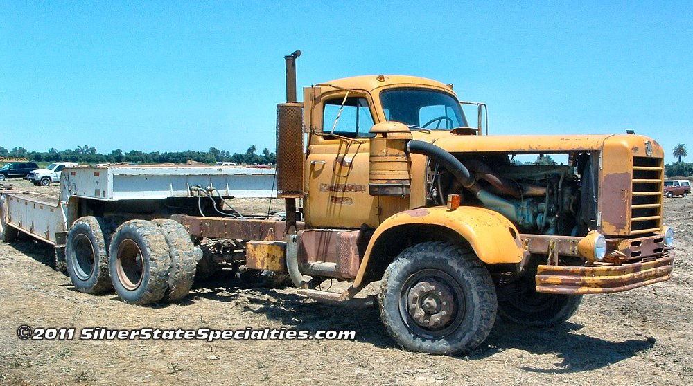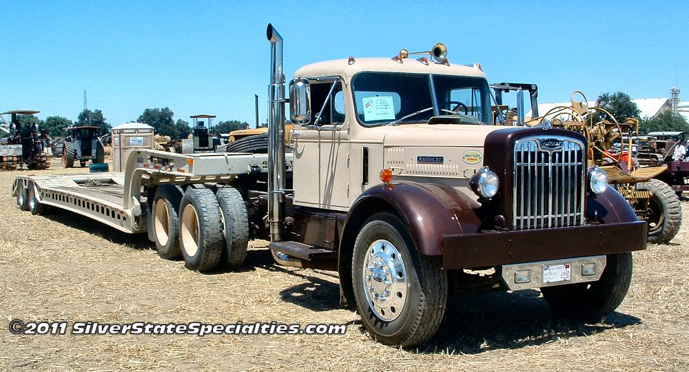 Nicely restored Autocar 6x4 semi-tractor with lowboy trailer