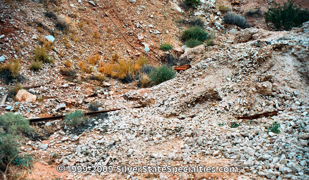 stick out from underneath piles of waste rock, and the gauge appears